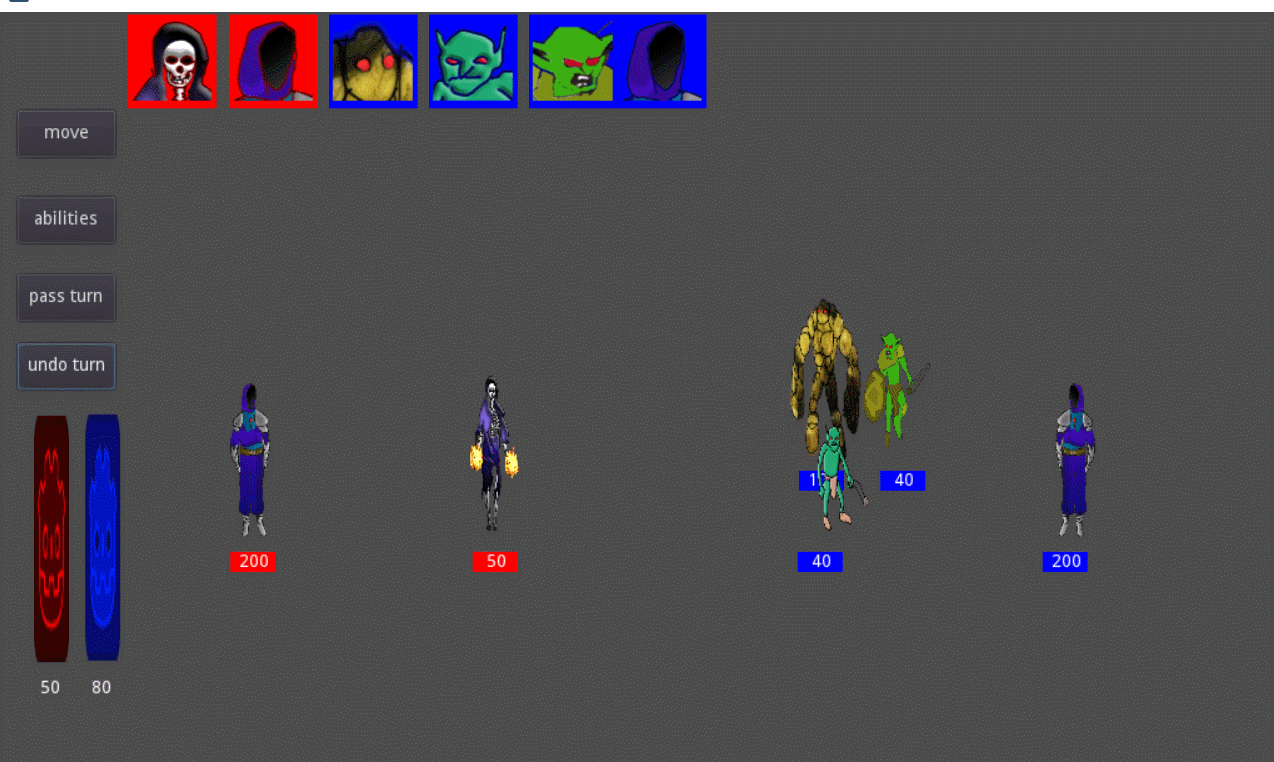 you start with a summoner and summon creatures, each creature has a couple of abilities, you can move once a turn, you can use abilities as long an you have the mana for it (it regenerates every turn), when a creature dies it leaves a soul other creatures can collect for small hp and mana boost.